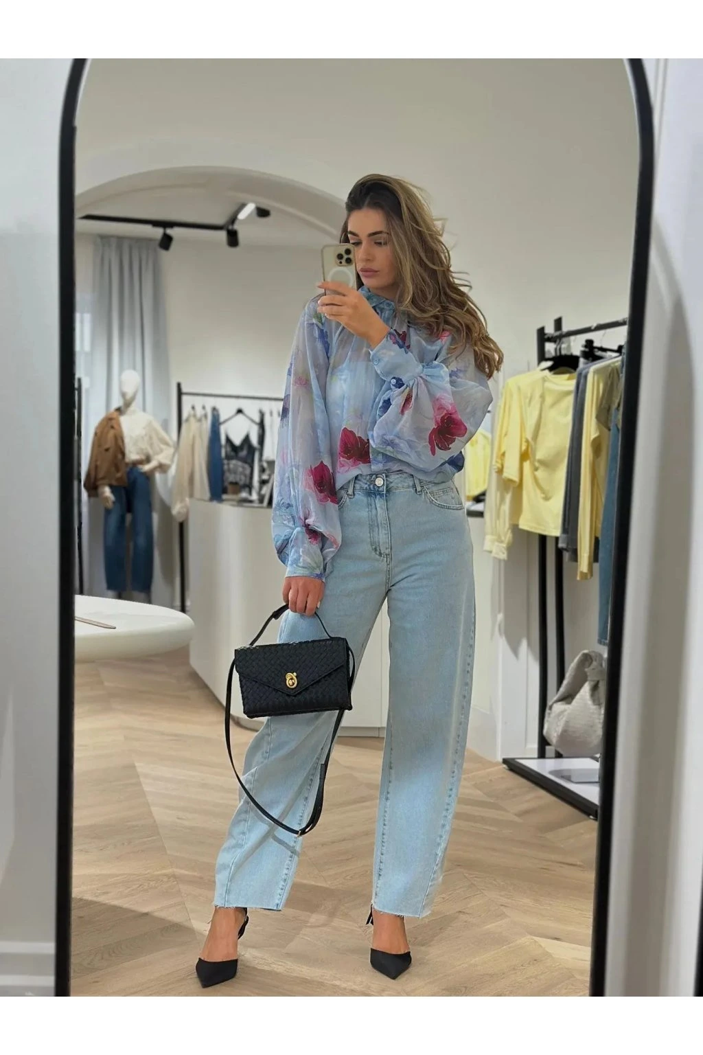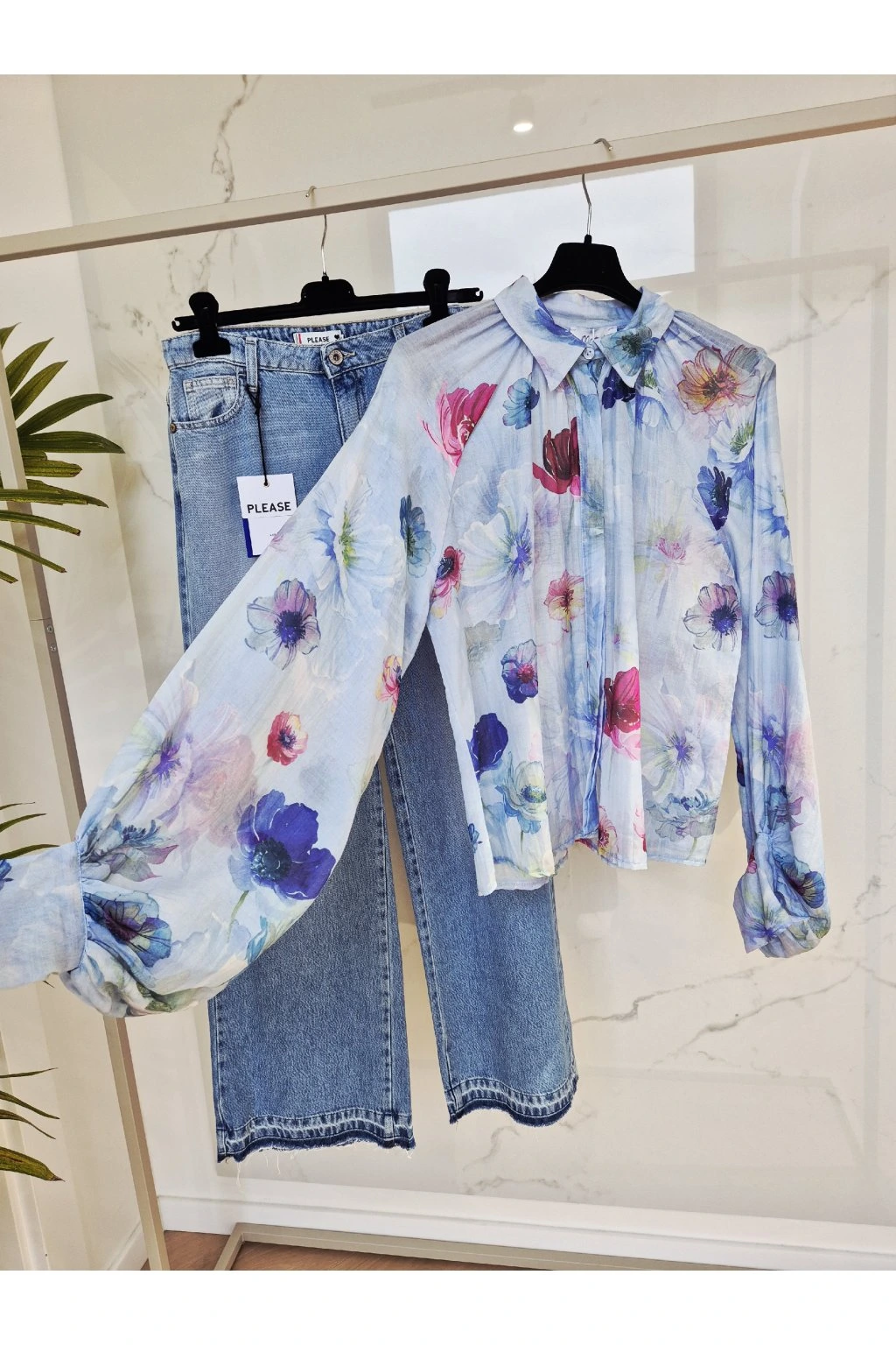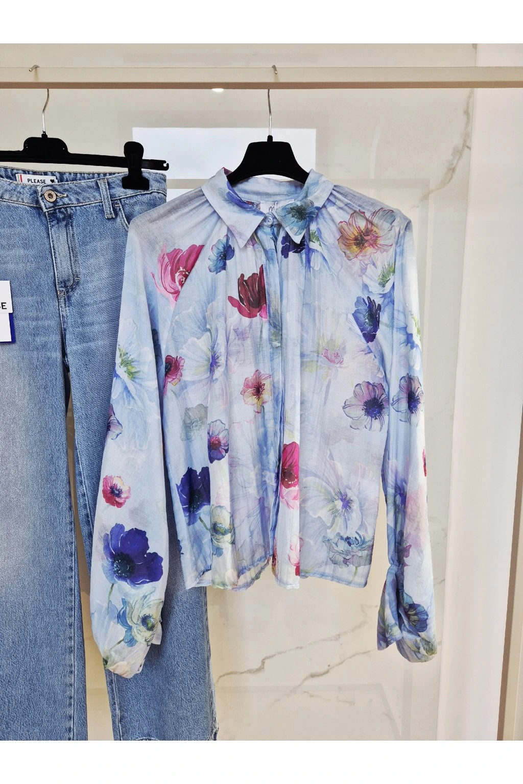 Hodvábna košeľa FLOWER modrá UNI